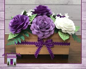 Purple & White Roses Paper Flower Arrangement In A Wooden Cra...