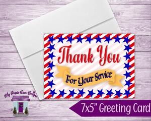 Thank You For Your Service Handmade Greeting Card, 7x5" Card ...