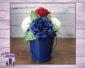 Paper Flower Arrangement with Navy Metal Bucket, Handmade Red...