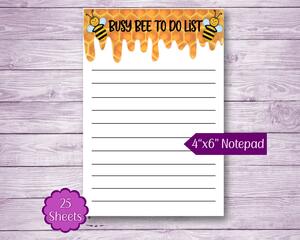 4"x6" Busy Bee To Do List Note pad, 25 Sheets, Honey Bee Note...
