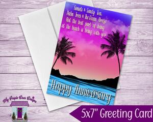 Happy Anniversary Card, Handmade 5x7" Greeting Card, Beach Su...