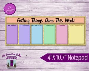 Getting Things Done This Week 4"x 10.7" Notepad, Pastel Rainb...