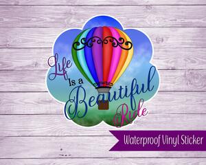 Life Is A Beautiful Ride Hot Air Balloon, Die Cut Glossy Wate...