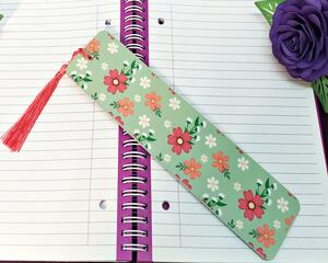 Floral Double Sided Bookmark with Orange Tassel 8"x2" Laminat...