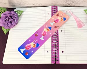 Bookmark Cocktail Fruity Double Sided with Pink Tassel 8"x2",...