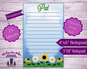 Personalized Sunflowers & Daisies Lined Notepad, Memo Pad, 25...