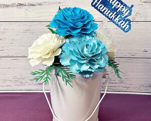 Happy Hanukkah Paper Flower Arrangement with White Metal Pail...